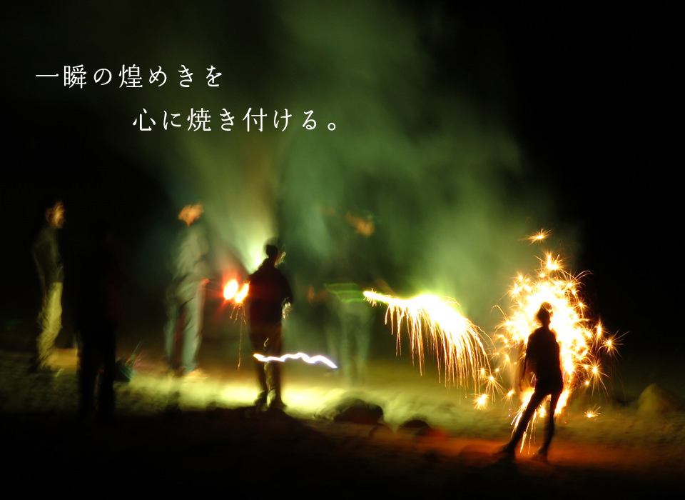 今年の夏に開催された花火大会の当キャンプ場からの景観です。